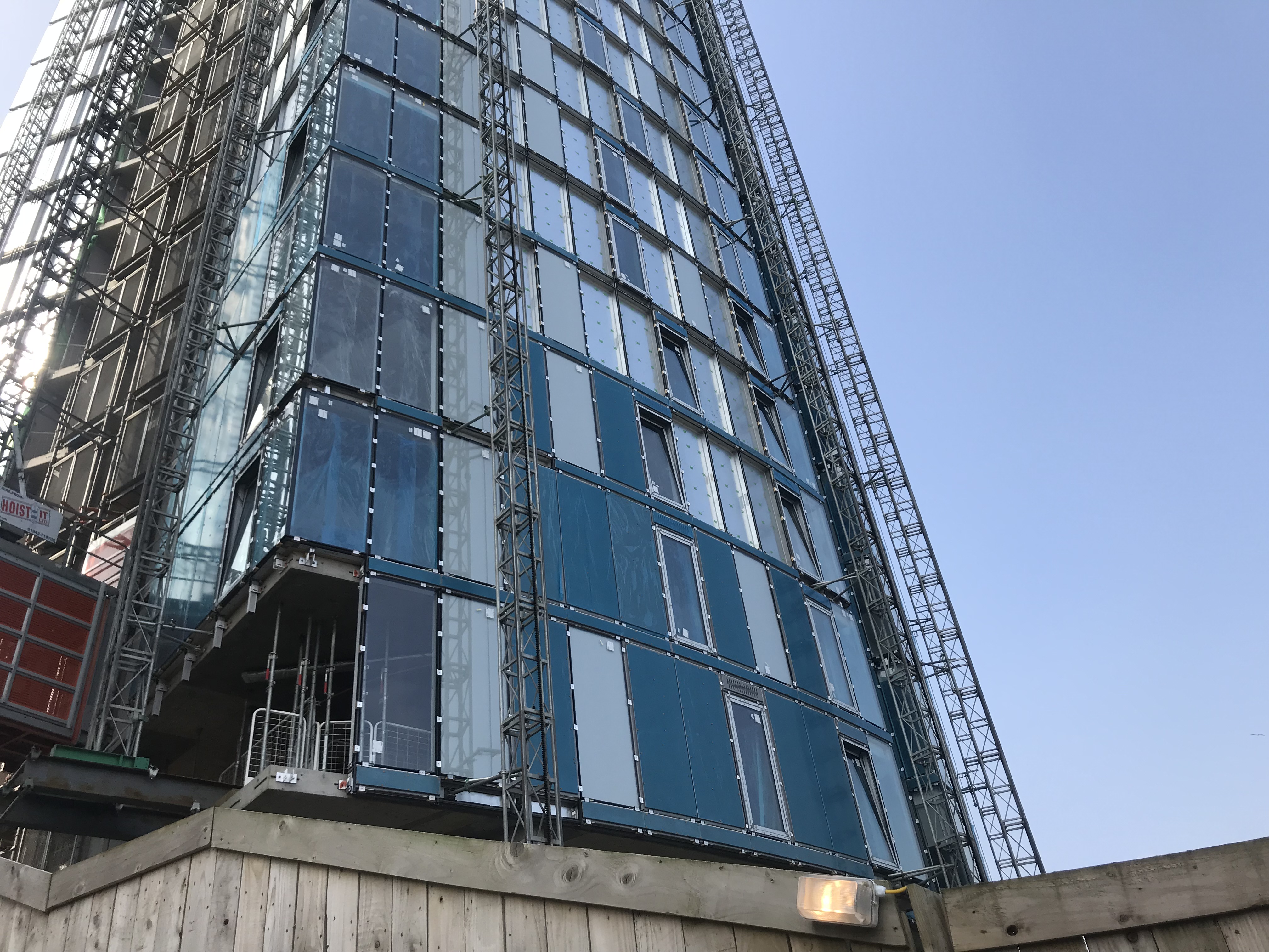 19th June 2018This month on site sees all curtain walling grids up to level 20 now been installed and aluminium has commenced on levels 1-4. Level 21 steelwork will commence this month. Curtain walling on levels 21 and above is not due to start until 30th July and we will be starting this on site on 18th June 6 weeks ahead of programme. First fix joinery is now complete on level 2. Tiling is now complete on levels 1 and 2 and kitchens are now complete on levels 1 -3. First fix joinery now complete on level 3 and underway on levels 4,5 and 6.